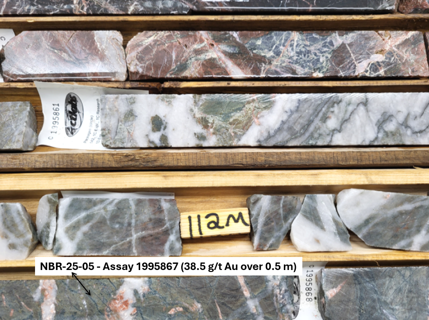On December 17, 2025, New Break released results from another six drillholes, with highlights including NBR-25-09, which returned 1.57 g/t Au over 70.7 metres from 95.8 to 166.5 metres and NBR-25-10, which returned 2.00 g/t Au over 38,0 metres from 68.0 to 106.0 metres. Results from these two holes indicate that the Zavitz zone is significantly broader than previously thought.
